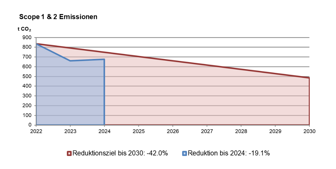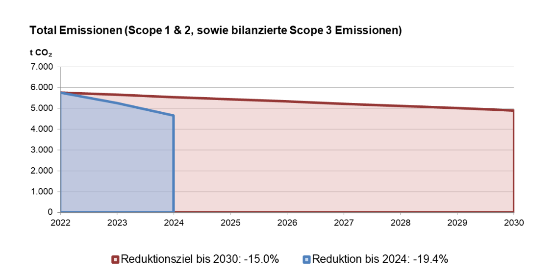 Die HUG AG hat sich zum Ziel gesetzt, ihre Scope 1 & 2 Emissionen bis 2030 um 42 Prozent zu reduzieren gegenüber dem Basisjahr 2022. Zudem strebt sie an, ihre gesamthaft bilanzierten Emissionen (inkl. Scope 3) bis 2030 im Vergleich zu 2020 um 15 Prozent zu reduzieren.