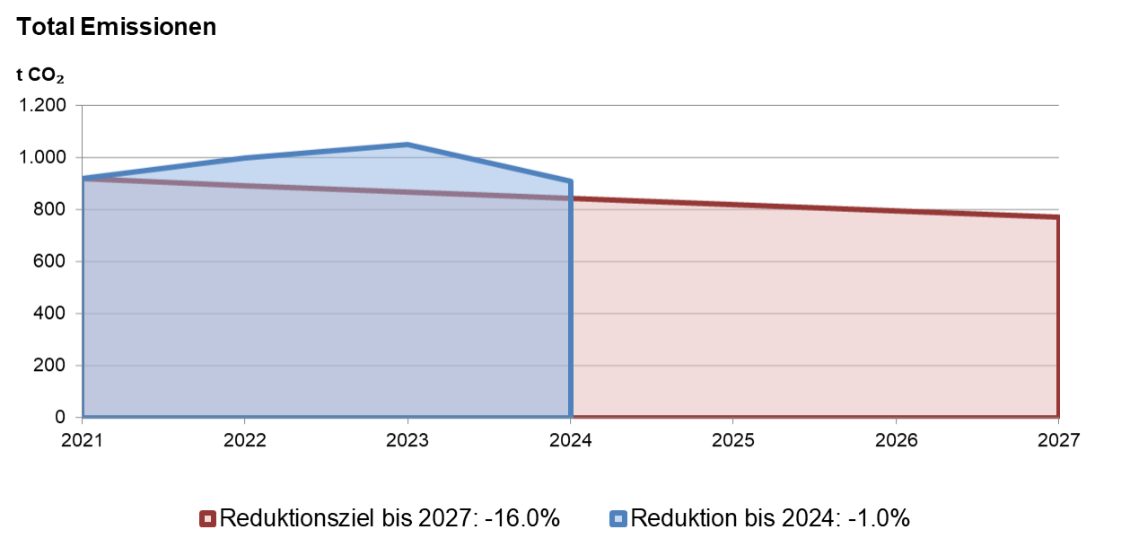 Die Schwyzer Kantonalbank hat sich zum Ziel gesetzt die absoluten Emissionen basierend auf den CO2-Emissionen von 2021 bis 2027 um -16 % zu reduzieren. Im Jahr 2024 haben die Emissionen gegenüber dem Vorjahr um -14 % und gegenüber dem Basisjahr um -1 % abgenommen.