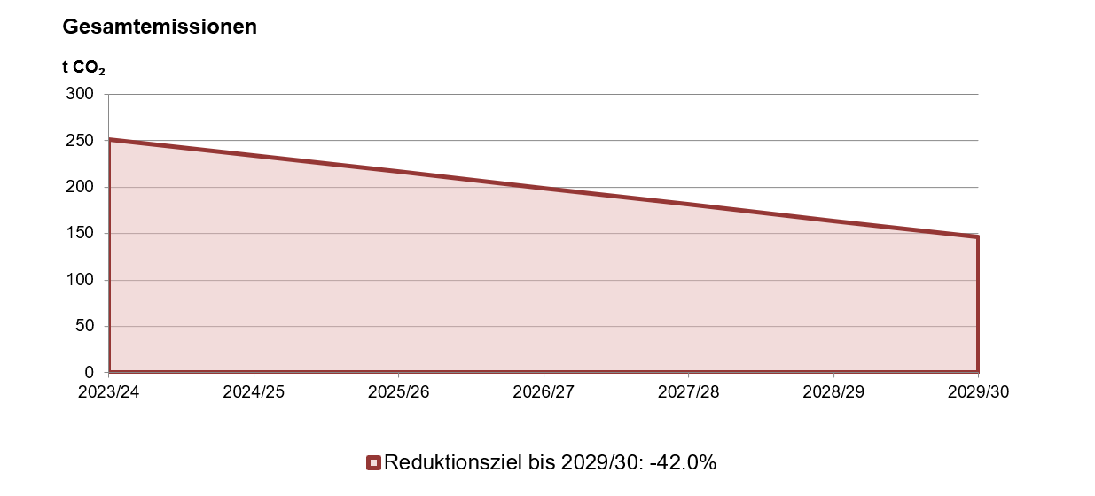 Reduktionsziel und Emissionsentwicklung 2023/24–2029/30
