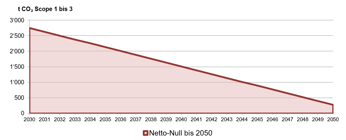 In der Bilanz nicht enthaltene Emissionen entlang der Wertschöpfungskette wurden mit zusätzlichen Berechnungen und im Rahmen eines Screenings in der Höhe von 288 t CO2 identifiziert. Dabei handelt es sich um Emissionen im Rahmen der Instandhaltung der Fahrzeuge (123 t CO2) und Emissionen aus neu angeschafften Fahrzeugen (165 t CO2). Da die beiden Kategorien zusammen weniger als 6 % der Gesamtemissionen ausmachen, wurden sie aus der Bilanz 2023 und 2024 ausgeschlossen. Zukünftig wird im Rahmen eines Screenings periodisch eruiert, ob es mengenmässig zu erheblichen Zunahmen gekommen ist, was ein nachträglicher Einschluss in die Bilanzierung zur Folge hätte.