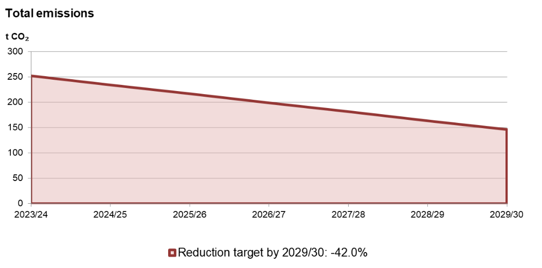Reduction target and emission development 2023/24–2029/30